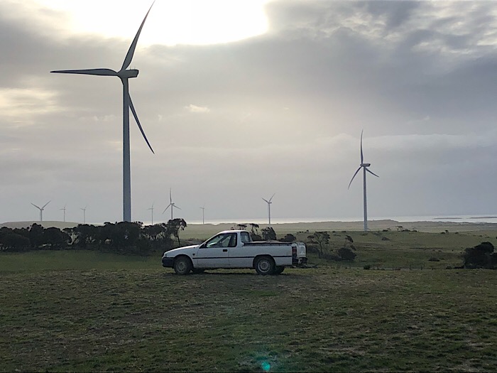 We’ll let the video do most of the talking today because it’s midnight and we have to travel all the way to the other side of Tassie tomorrow. One of the threats to eagles in the environment is colliding with wind turbines. We visit the Woolworth Wind Farms operation at Musselroe Bay to see what’s going on.