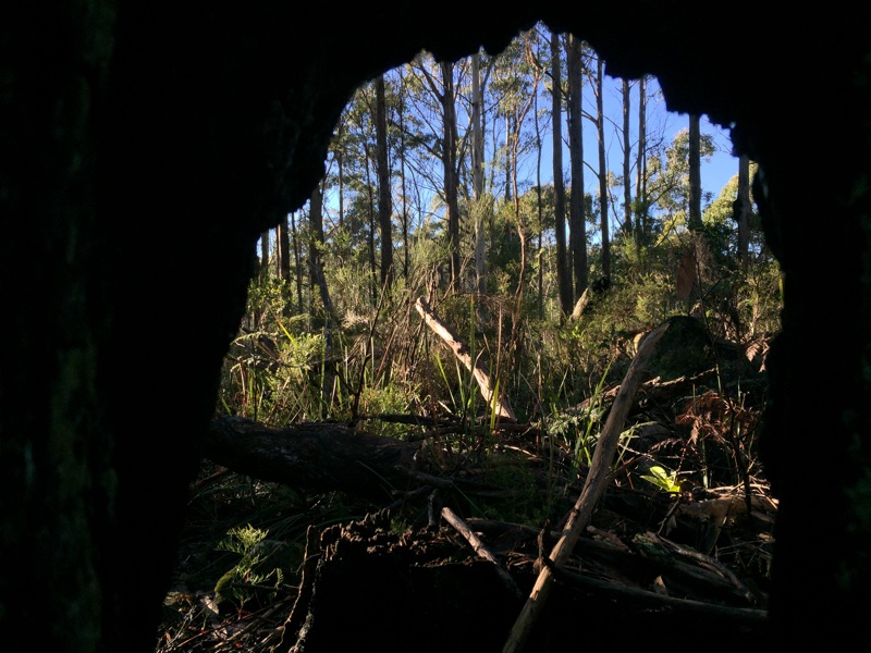 Before we started taking down the ground level 'practice' tree hose we all went for a walk to warm up. There's a track nearby that goes down to Butchers Creek where we found. Weir and pump shed. The forest changed as we went down the hill to have more dense understory and less light coming down to the forest floor.
