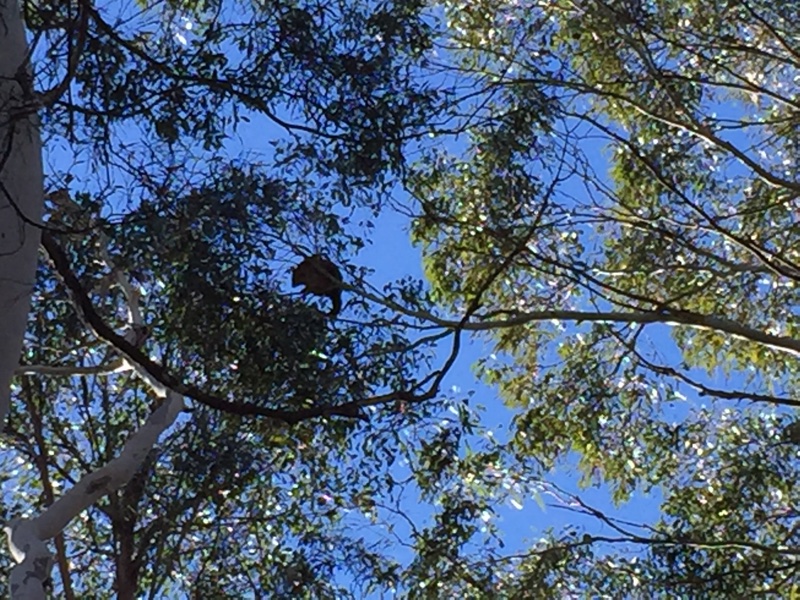 The possum tip toed out to an unlikely spot right on the end of a dead branch. It was planning to jump across to the branches of a tree next door. Saul and I watched in amazement and it wiggled its possum behind and sprang into the air. With a graceful crash it landed and quickly scampered into hiding well away from the human intruder.