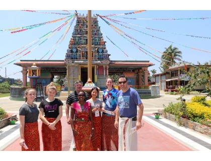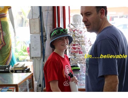 After that enticing game we caught a bus to Nadi town/ shopping centre. When we got there we stopped at the Corner Store Café and established that this would be our ‘base’. We then walked to the markets where we chatted with the locals and found out about many local fruits and vegetables. Shiloh learned some new carving skills at the souvenir markets. We continued on to a Hindu temple where we were asked to wear sulus out of respect, we were also asked to remove our shoes. Inside the temple were many amazing ceilings that were decorated with different legends, gods and goddesses from the Hindu religion. After that we went shopping for our own sarongs. We then met up for lunch at the Corner Store Café.