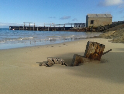 It's almost the end of the solo part of the expedition as I've arrived back on Three Hummock Island to await the student team. It was a short crossing of Hope Channel with the sail up. Bev spotted me from the managers house and snapped a distant photo as I sailed into the jetty. John and Bev came down on the quad bike with a trailer to help with the gear. I'm trading in a tent for the Homestead as the expedition enters part 2. We could even give it a different name, like 'Student Survival... Or Not.' Only joking concerned parents, I hear they are going to attempt the boat crossing from Woolnorth tomorrow morning. With a windy forecast its still not certain they'll arrive. I really hope they do because my food bag is desperately boring now. Just a half bag of rolled oats, a few tablespoons of milk powder, a tin of sardines, two handfuls of pasta and a sprinkle of parmesan cheese. I'm sure John and Bev would save me if needed but they have to look after themselves out here. It can be months between excursions to the supermarket!