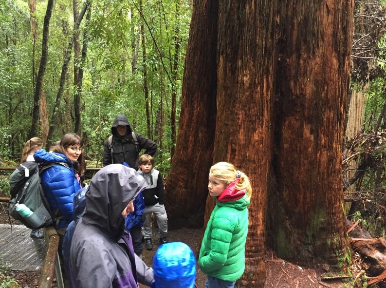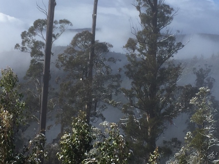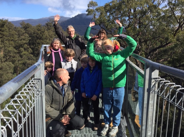 It wouldn't be a proper August expedition in Tasmania without a sprinkling of snow. We got it last night and this morning. Luckily it was also the day to bail out of base camp and head down the hill to Tahune Airwalk. We smuggled the students and their families in for a forest walk with Dr Sue.