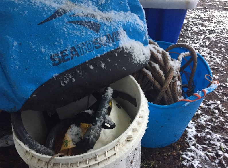 Last night the rain stopped pinging off the tent and it went eerily quiet. When I awoke with the sleeping bag drawn tight under my chin I could hear the faint brushes of snowflakes sliding onto and down the tent fly. It took a good few minutes to decide to unzip and have a look outside.