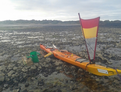 The tide was low so it was a drag and three carries with bags to load the kayak at the waterline across the rocks. Dr Eric would be interested to know that there were 2 red capped plovers on the beach just before I left too. On the water our first confirmed Shy Albatross flew past at eye level, the smear of dark eye shadow positively identifying it. Woo-hoo, getting closer to Albatross Island. Closing in on Robbins a small pod of dolphins were cruising past- Dr Rach asked me to report all whales and dolphins. On the long eastern beach it was so calm I could paddle within meters of the sand and counted 6 hooded plovers and a couple of wagyu cows. I've taken up John's generous offer of accommodation on Walker Island and might be here a few nights if the strong northerlies come in as predicted.