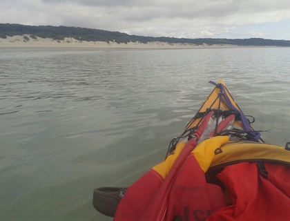 Before sunrise, which is about 7am, I lay listening to the sounds outside. There weren't many, the "two-wit" of the pied oyster catchers saying their hellos and not much else. Ah, no wind I thought, happy that the forecast was correct. John Hammond and extended family farm wagyu beef on Robbins Island and I've been in touch to let them know I'd be in the area. John was on the phone to let me know it'd be okay to use a shack on Walker Island, just off the northern tip of Robbins. From North Point it was almost due west across Perkins Bay for about 15 kilometres to hit the south east corner of Robbins. Even on a good weather day it's a big deal to leave the relative safety of the shoreline and head offshore. Extra precautions should be taken. I checked the PLB (personal location beacon) was in my life jacket and that I could see the deck compass. I put an extra muesli bar in the day hatch and filled up the camelbak.
