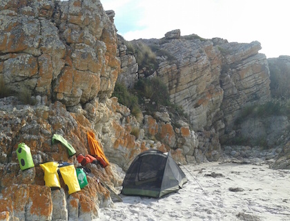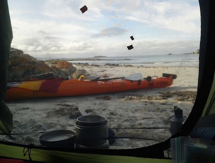 Pulling in at the northern tip of Walker Island I've set up just above the high tide mark, at least I hope it is. Might be a quick dash this evening otherwise. John Hammond told me Love Bay is named after Eddy Love who was shipwrecked here in the 1800's and ended up walking off the islands at low tide! The tides around here create some fast flowing water so I'm not surprised to hear a few sailors have come to grief in times past.
