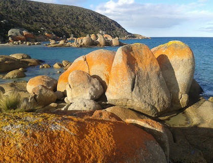 Crossing from Walker Island to Three Hummock Island today I waited until mid morning so the tidal flow would be low and slow. As Bass Strait fills up the tide rises and as it empties out the tide falls. This happens roughly twice a day and creates a tidal flow which can be very strong. At the turn of tides the flow slows down before reversing and this is a good time to paddle if you're going around headlands, through channels or crossing between islands (if they're not too far apart).