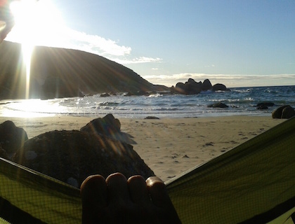 The wind picked up speed last night and had blown fine beach sand into the tent as i slept. I woke to a gritty dusting of it over everything. Aargh!
