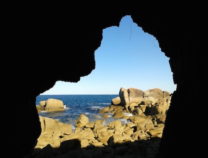 The waves had also picked up so I dragged the kayak down the beach further and pushed off into a protected channel between the granite boulders. When waves bash squarely into a rocky shoreline their energy bounces back out as new little waves. When these hit the incoming waves it creates clapotic waves. It looks messy and as if the sea is sloshing up and down on the spot. The wave crests can become twice as high and the troughs twice as deep. There was a mild case it this morning as I paddled close to the rocks around to East Telegraph Beach. It makes you feel giddy after a while!